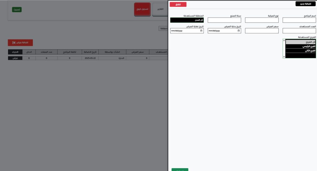 - - تحديد تاريخ بدء وانتهاء العروض التسويقية