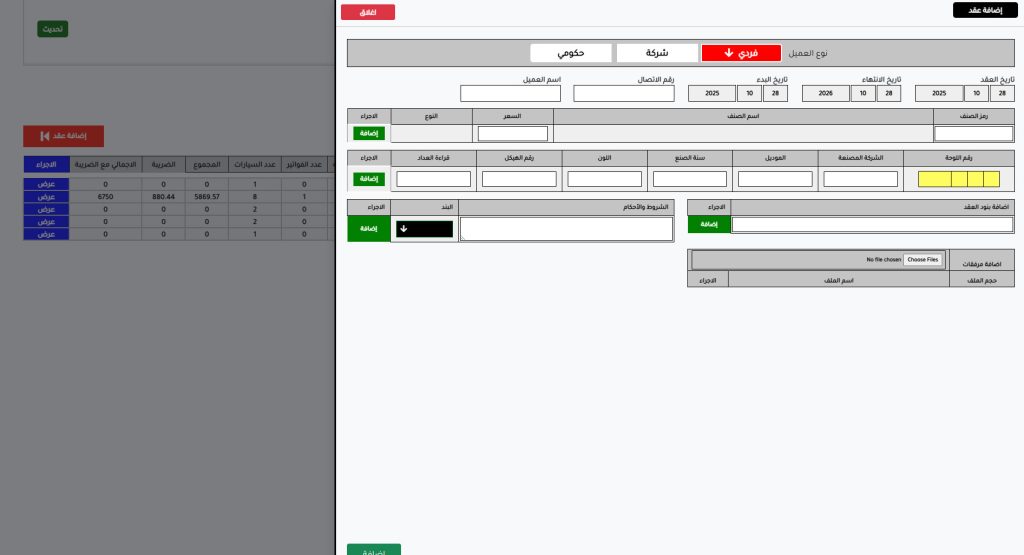 - - امكانية اضافة فواتير ، اوامر تشغيل ، عرو سعر، وتعديل بيانات العميل